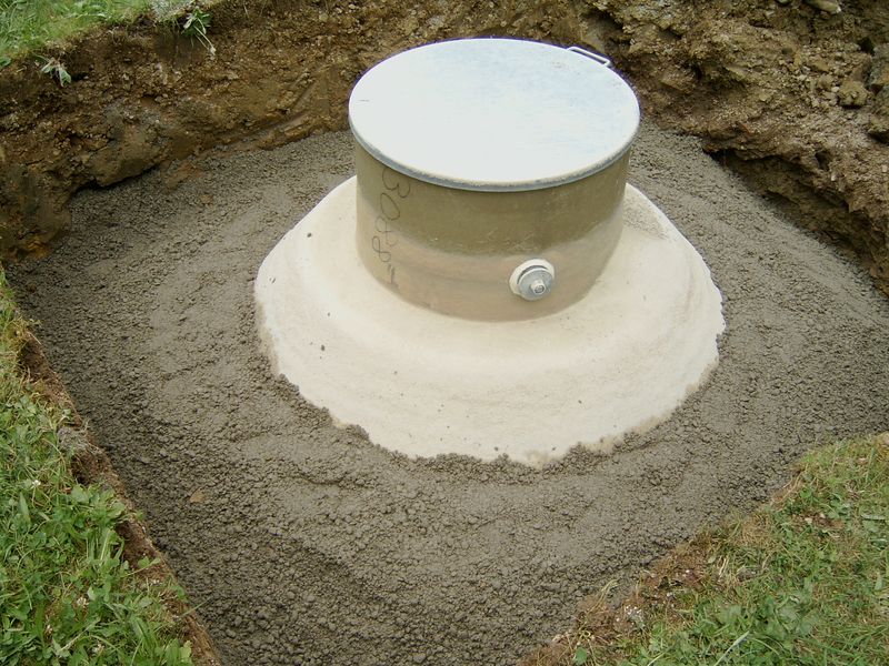 In the Haase underground tank, buoyancy protection is achieved by a defined amount of concrete that is applied in the shoulder area of the tank.