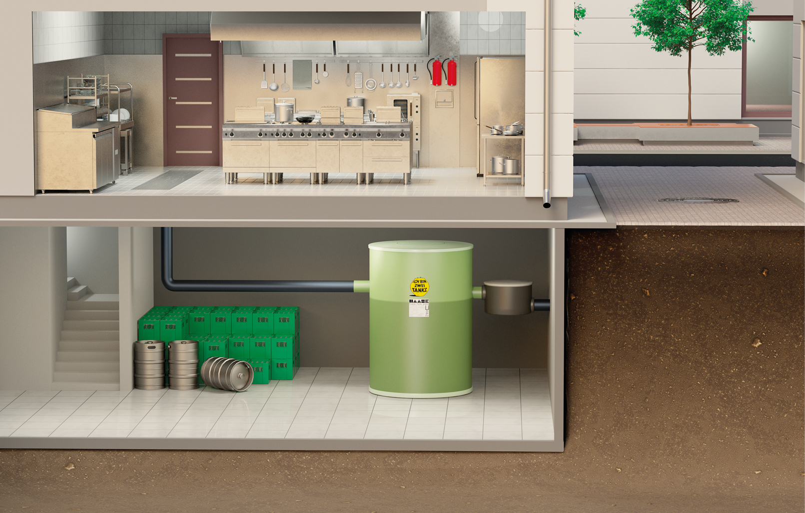 Fat separators are mandatory in companies where dirty and rinsing water containing grease and oil is produced.