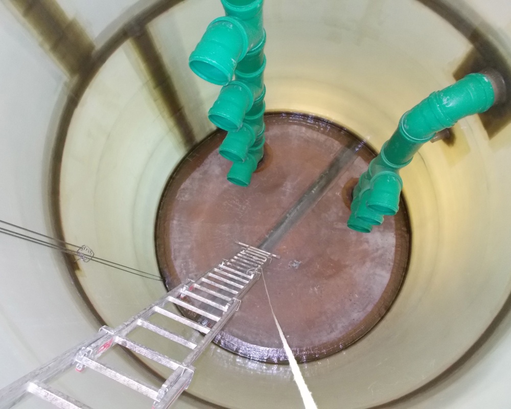 Die für das Wäschetransportsystem benötigten 2 Durcklufterzeuger erzeugen ständig Abwärme mit ca. 65 °C, diese Wärme wird im obersten Bereich des Speichers zugeführt. Im mittleren Teil wird Abwärme mit ca. 60 °C aus dem Rücklauf der Gebäudeheizung (300 kW) eingespeist. Der untere Abschnitt des Speichers wird mit Wärme aus den Abgasen des 4 MV-Dampfkessels beladen, der für diverse Prozesse in der Wäscherei verwendet wird.