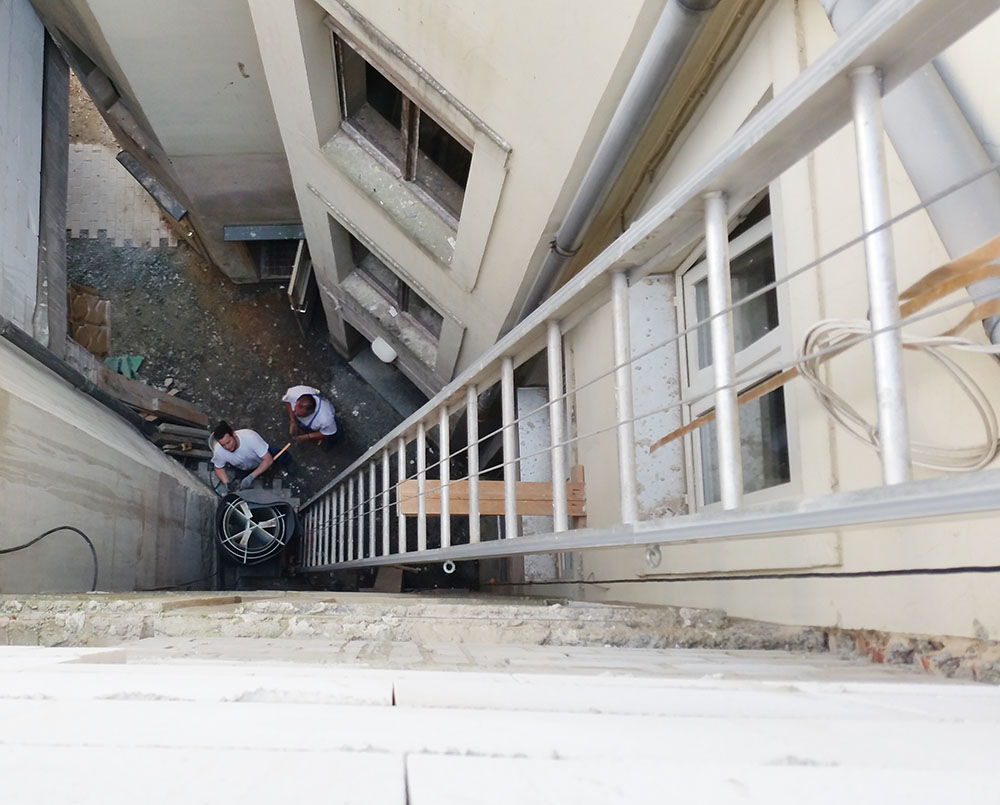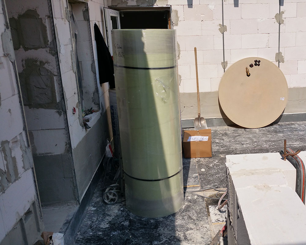 Wegen der Erweiterung der Bäckerei war es notwendig, den Wärmespeicher im 3. Obergeschoss zu installieren.