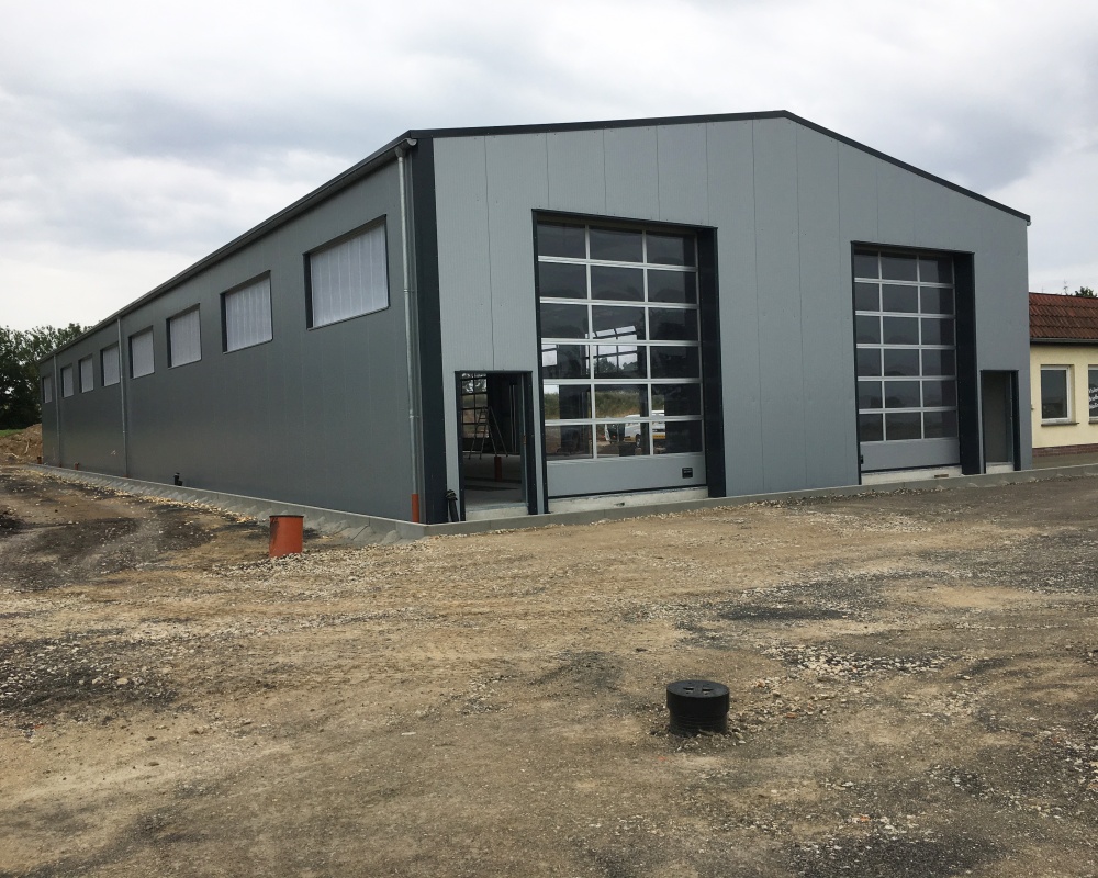 Das ist die neue Halle der BTS Brandschutztechnik Stolpen Karosserie- und Fahrzeugbau GmbH.