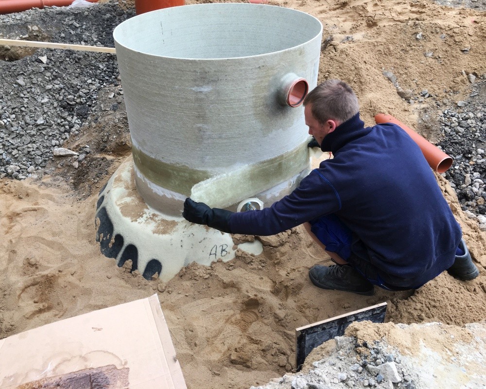 Der Schachtaufbau – das große „Sorgenkind“ im Abscheiderbereich – wurde ebenfalls aus GFK hergestellt. Somit gibt es keine Fugen, wie sonst beim Aufbau mit Betonringen üblich. Das heißt, der Betreiber muss hier nicht mit Folgekosten rechnen.