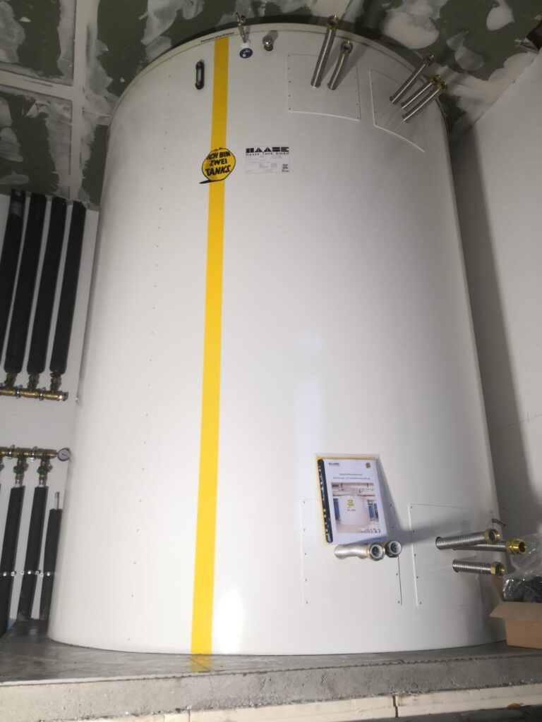 Nach der erfolgreichen Installation des ersten Speichers folgt nun im April 2024 Wärmespeicher Nummer zwei. Auch dieser Speicher wird für die Warmwasserversorgung der Bäder zuständig sein.