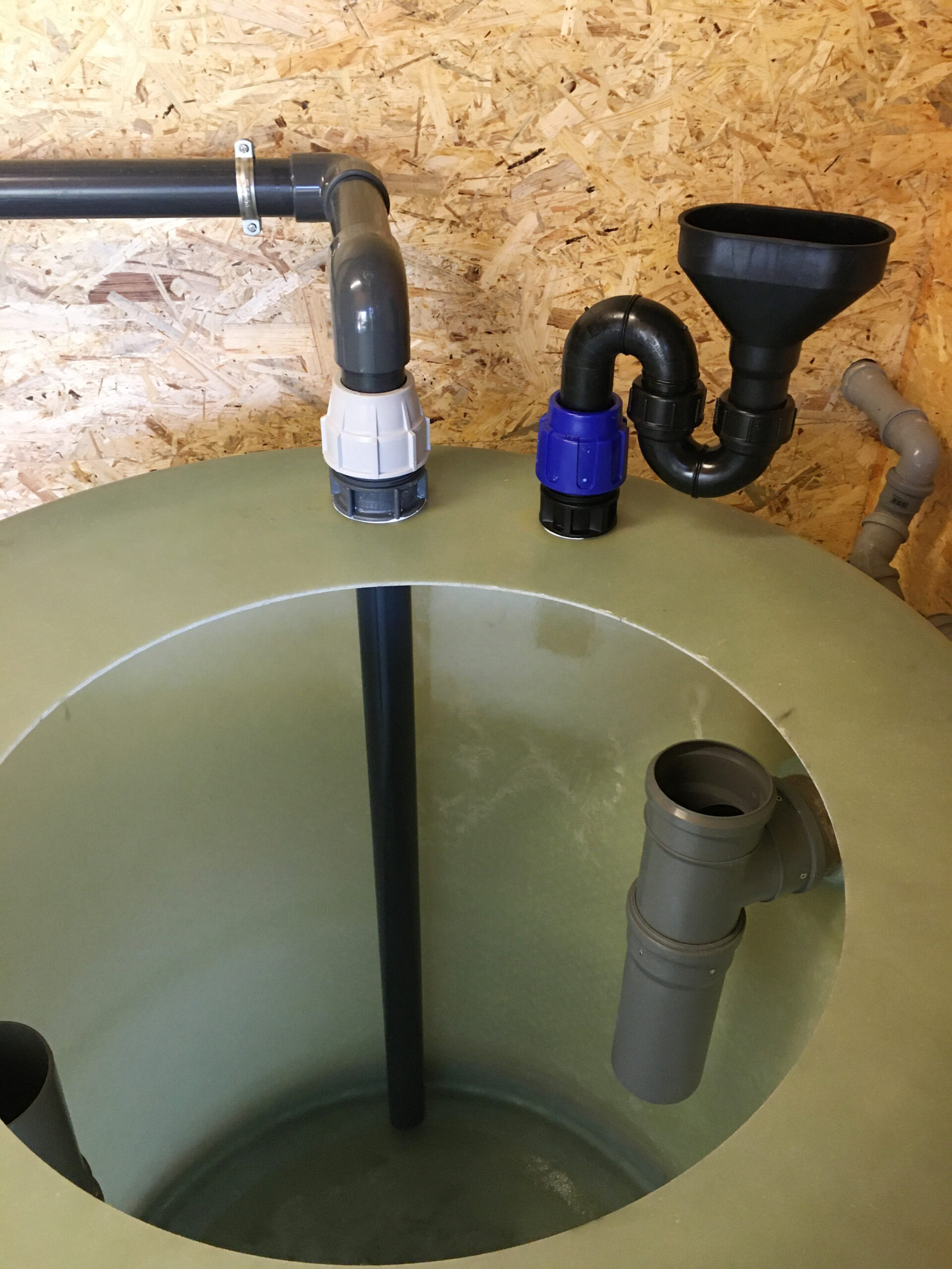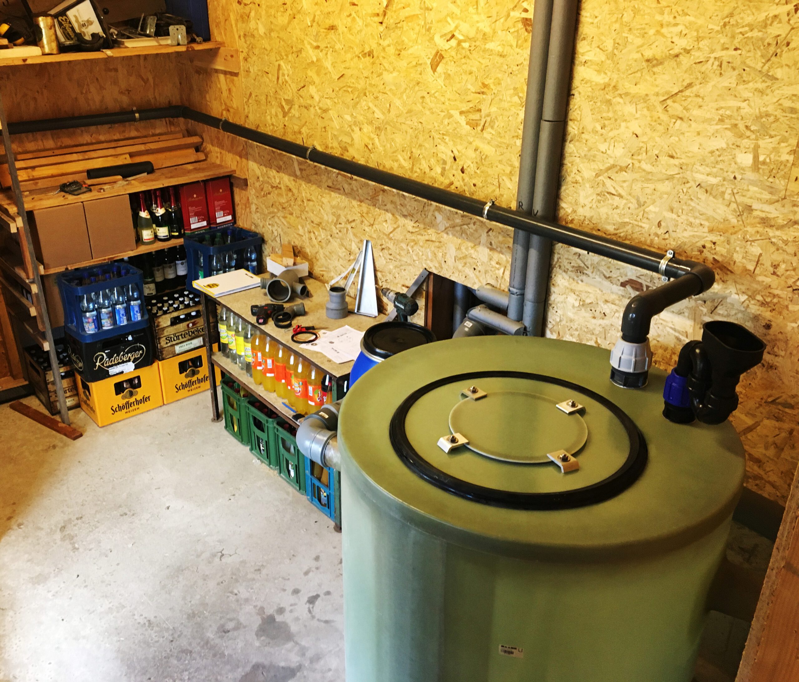 Der Fettabscheider von Haase wurde werksgefertigt angeliefert und konnte auf Grund des geringen Gewichts problemlos eingebracht werden. Zur Entsorgung der Inhalte ist der gegen Fettsäuren beständige Abscheider aus GFK (glasfaserverstärkter Kunststoff) mit einem Rohr zur Direktabsaugung ausgestattet.