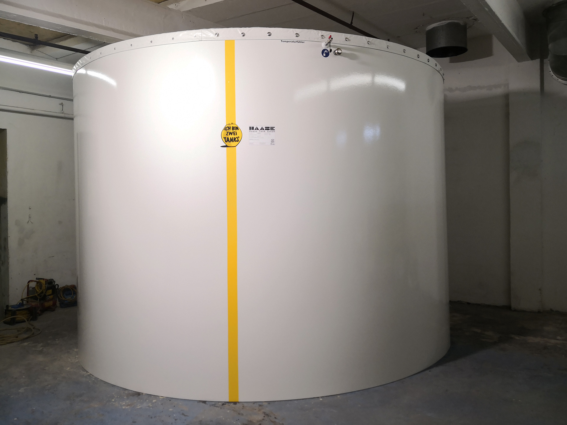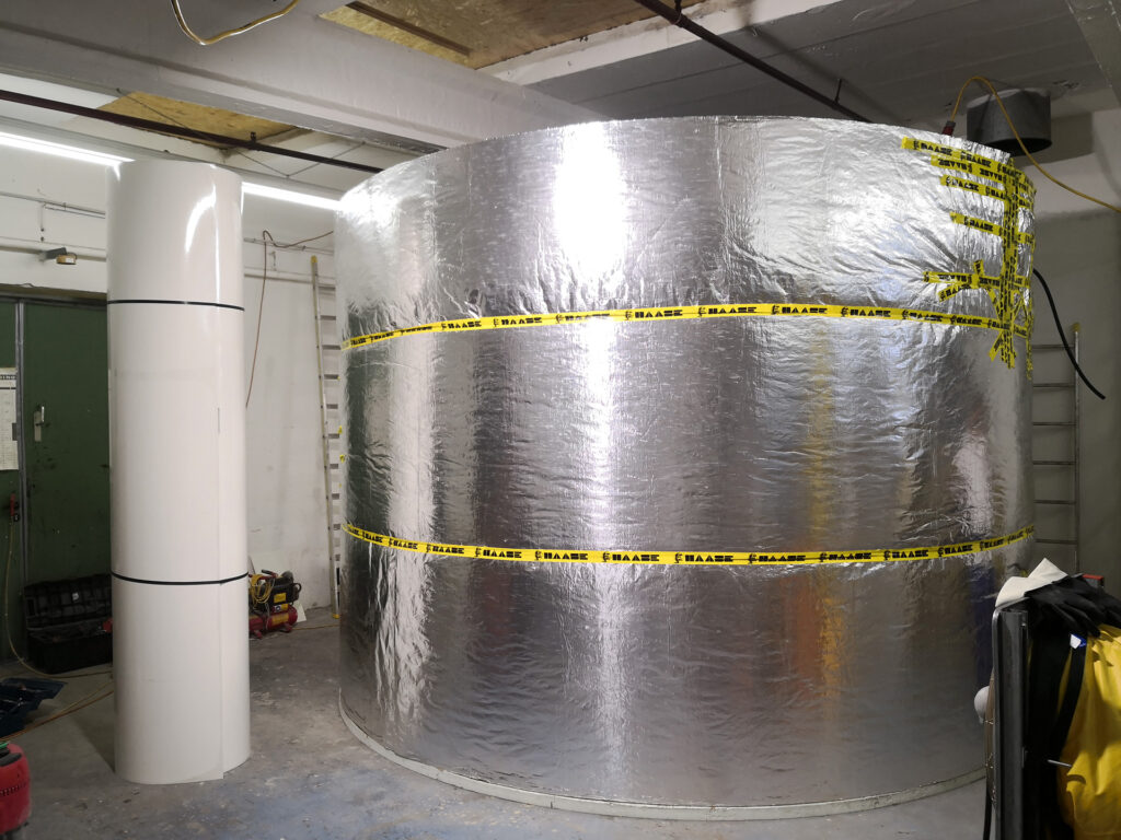 In einem Industriebetrieb in Bayern haben wir einen Pufferspeicher des Typs K 435-224 montiert, der ein Speichervolumen von ca. 23.150 Litern aufweist. Die Wärme wird von zwei Pelletskesseln bereitgestellt, die jeweils bis zu 350 kW Heizleistung liefern können.
