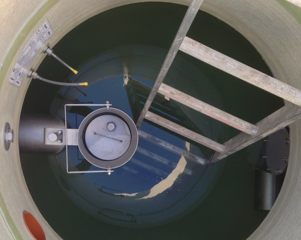 Die Höhe des fugenlos anlaminierten Schachts kann auch vor Ort jederzeit angepasst werden. Ein weiterer Vorteil ist das geringe Gewicht und die kompakte Bauweise des Haase-Abscheiders. Somit können die Anlagen kostengünstig mit einer Spedition transportiert werden, der bei Beton-Abscheidern übliche Schwerlasttransport ist nicht erforderlich. Die Entladung erfolgte unkompliziert mit einem Bagger. Über den Domschacht DN1000 ist ein problemloser Einstieg und damit eine unkomplizierte Prüfung möglich.