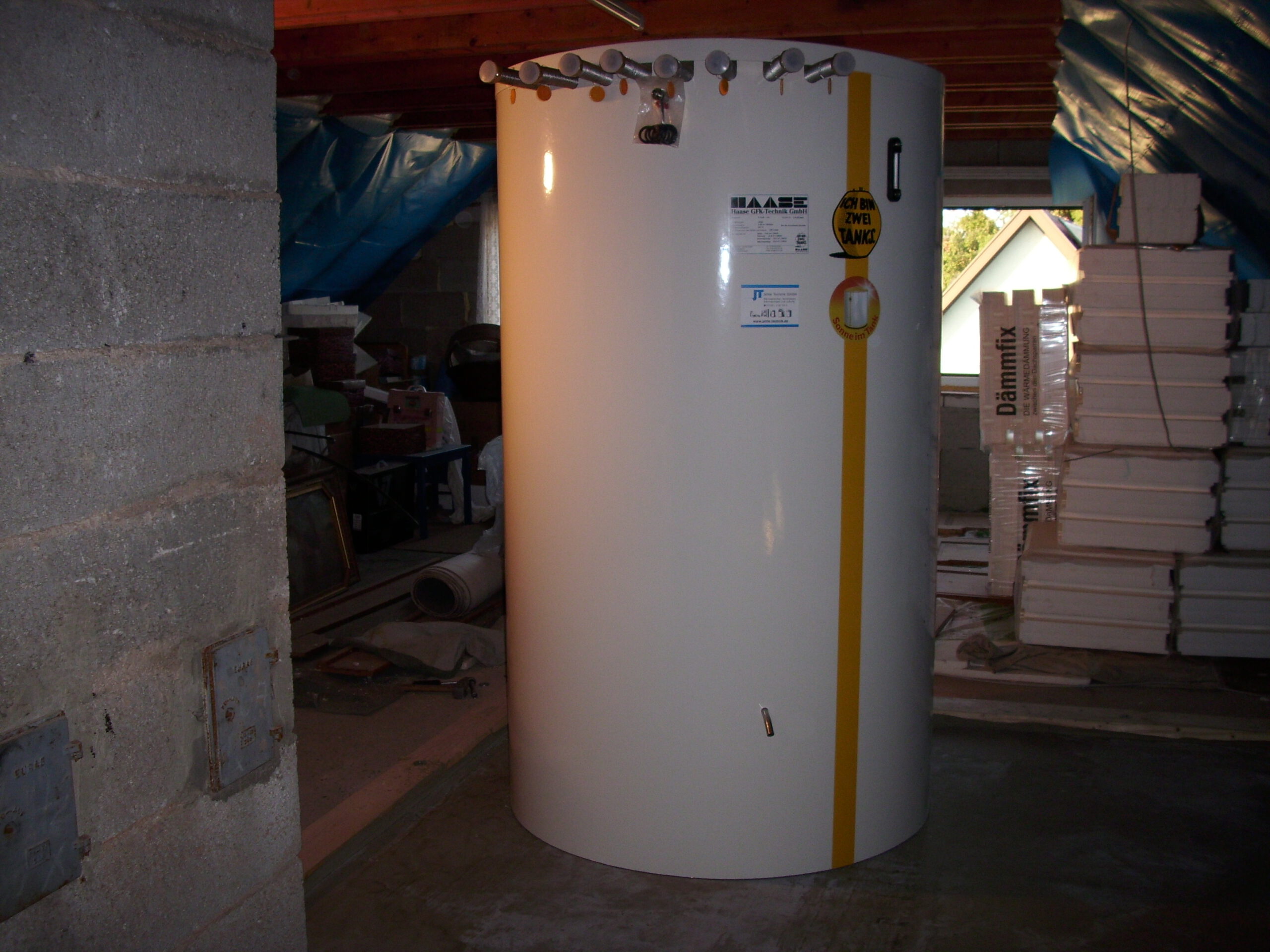 Wärmespeicher auf einem Spitzboden installiert